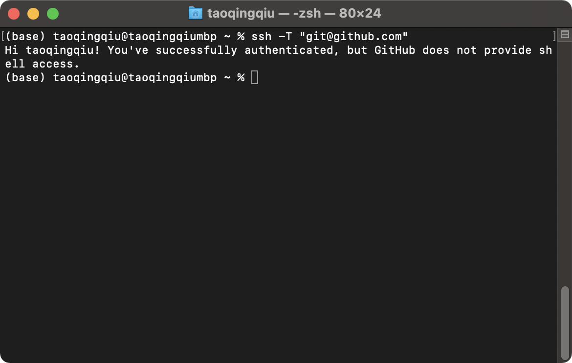 ssh -T "git@github.com"测试是否关联托管平台成功: